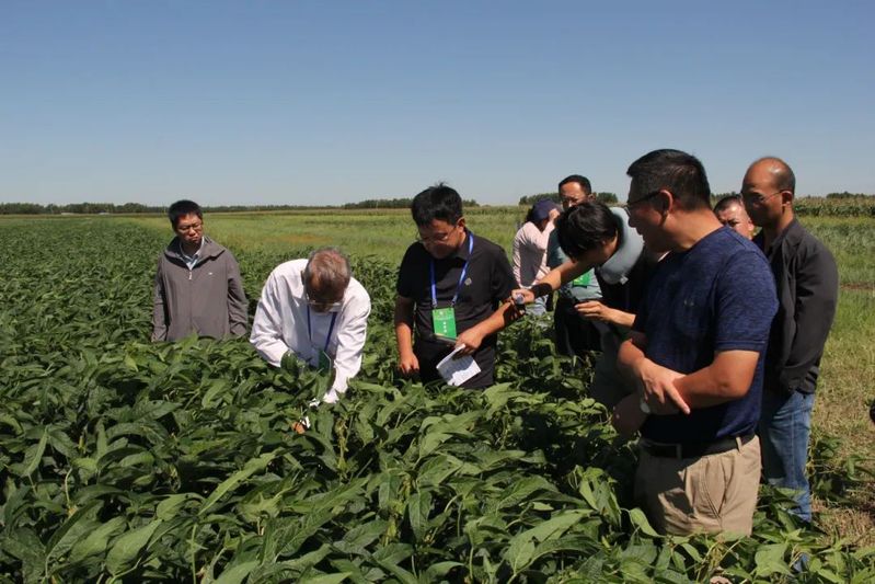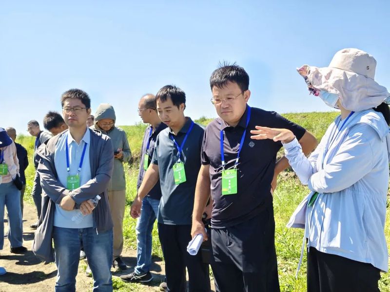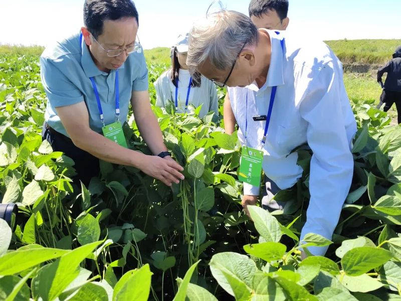 在安达市先源乡、太平庄镇示范基地的田间观摩环节,参会专家实地察看了大豆的田间长势与生长表现,现场听取了课题主持人张玉先教授及子课题负责人张明聪副教授关于基地整体情况的介绍,包括近年来盐碱地改良的技术路径、种植技术体系的组装应用等核心内容。