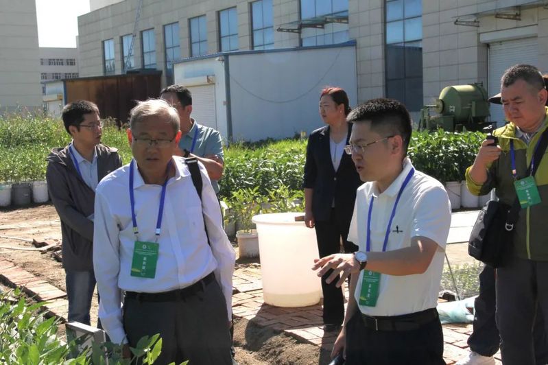 随后,专家组一行前往国家杂粮中心盆栽场基地,团队骨干曹亮、赵强副教授分别就盆栽场盐碱地大豆种植试验的设计思路、实施过程及初步结果进行了详细讲解。