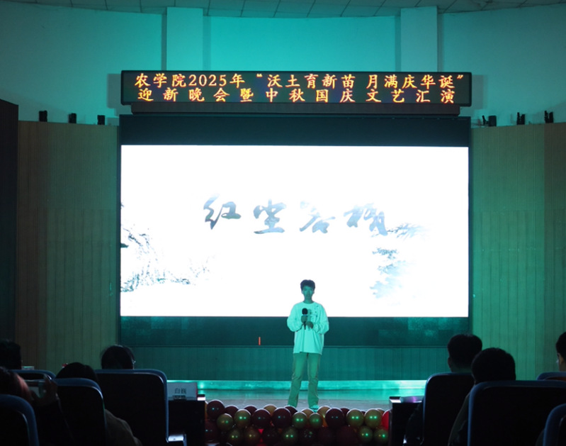 9月30日晚,农学院2025年“沃土育新苗,月满庆华诞”迎新晚会暨中秋国庆文艺汇演在大学生活动中心106隆重举行。