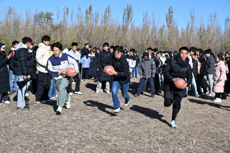 本次运动会以“强体铸魂,凝心育人”为核心宗旨,既想通过趣味项目打破新生间的陌生壁垒,增进彼此的默契与友谊,也希望在初冬时节点燃大家的运动热情,助力学子强健体魄、释放学业压力。活动精心设置团团抱、气球传情、足球障碍接力、旋转接力、沙包投掷、四人五足六大项目,兼顾趣味性与协作性,成功吸引众多新生踊跃参与,现场活力满溢。