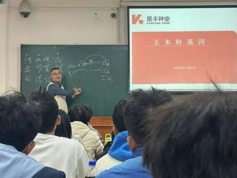 11月5日上午,北大荒垦丰种业股份有限公司宾西育种站负责人、八一农大2006届优秀校友姜森应邀重返母校,在农学院为2023级种子科学与工程专业学生带来题为《玉米转基因育种》的专题讲座。本次活动不仅是农学院推进产教融合、深化校企协同育人的重要环节,更是与垦丰种业共建《种子检验学》课程的一次生动实践,有效促进教育链、人才链与产业链的深度融合。