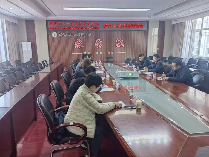 会上,双方围绕寒地作物优新品种培育、高产技术模式集成、复合型人才定向培养、科技成果落地转化等核心议题深入磋商、凝聚共识,明确了“科研协同、成果共享、人才共育”的合作方向:在科学研究领域,聚焦粮食单产提质增效、病虫害绿色精准防控、土壤地力保育提升三大核心领域,针对江滨分公司生产实践中的技术瓶颈与现实需求,联合组建跨学科科研攻关团队,开展靶向性技术研发与示范推广,让科技创新成为破解生产难题、保障粮食丰收的“金钥匙”;在成果转化领域,搭建高效便捷的成果转化平台,推动学院科研成果在农场田间地头快速落地生根、开花结果,形成“科技赋能产业升级、产业反哺科研创新”的良性循环。