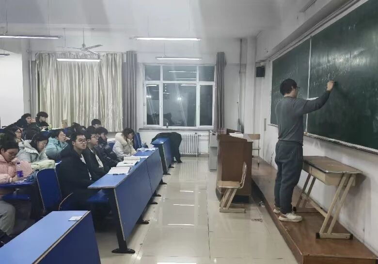 活动特邀成绩优异、经验丰富的高年级学长独吉安担纲主讲。独吉安在讲解过程中,以“基础知识点梳理+典型例题拆解+易错点避雷”为核心,用通俗直白的语言拆解抽象公式,将高数的逻辑推导、普化的实验原理转化为易懂的解题思路。现场同学们主动上交手机,专注记录重点,针对“函数求导”“化学平衡计算”等问题积极学习,倾囊相授备考技巧与学习方法,学习氛围浓厚热烈。