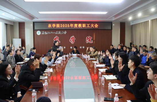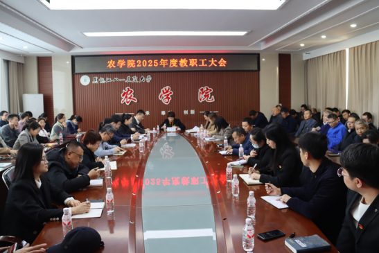 凝心聚力谋发展,砥砺奋进谱新篇。为系统回顾总结学院2025年度各项工作进展与成果,科学谋划部署2026年发展任务,进一步凝聚共识、汇聚力量,2025年12月30日,农学院2025年度教职工大会隆重召开。校长李翠霞应邀出席大会,学院党政领导班子成员及全体教职工参加会议。大会由学院党委副书记白巍主持。