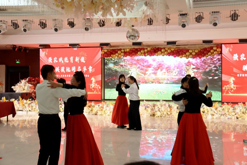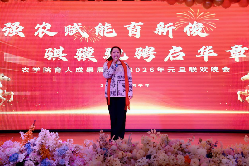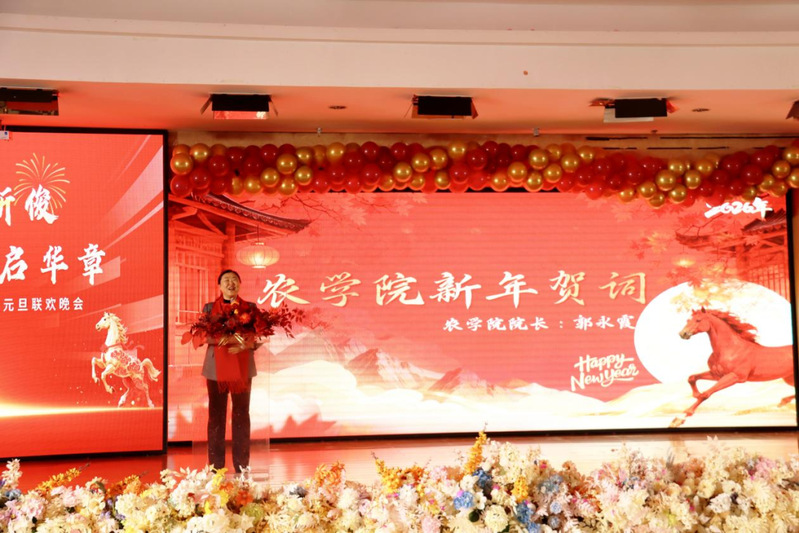 灵蛇摆尾辞旧岁,骏马昂首迎新春。为总结学院2025年质量发展经验措施,展现学院育人成果。12月31日,学院举办“强农赋能育新俊 骐骥奔腾启华章”农学院育人质量展演暨2026年元旦联欢会,农学院全体教职工参加。