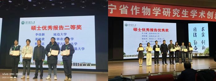 2025年12月29日-31日,第十届辽宁省作物学研究生学术创新论坛在沈阳农业大学成功举办。本次论坛以“科技赋能农业创新,青年引领乡村振兴”为主题,汇聚了省内外作物学领域青年才俊,我院研究生在论坛中表现优异。