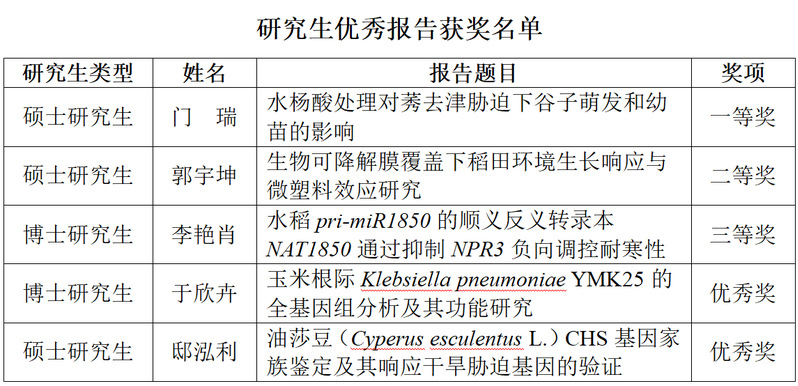 为保证报告质量,作物学科组织学科骨干教师对报告进行严格筛选,并对入选研究生进行了培训与报告提升。本次佳绩的取得也是学院长期以来系统性培养研究生学术创新能力所结出的硕果。未来,作物学科将继续鼓励和支持研究生参与高水平学术交流引导青年学子将青春的论文写在实验室里,更写在祖国广袤的田野上,用实际行动践行强农报国的初心与担当!