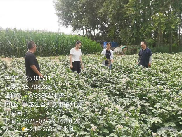 7月27日,农学院教师张桂芝作为省马铃薯体系专家成员和肇州县永乐镇科技特派员,特邀请园艺园林专家靳亚忠、李春霞、杨升一同为永乐镇王家围子村马铃薯大面积生产示范田进行技术指导,针对马铃薯田间生长过旺和防控问题提出相应技术措施。通过示范区的带头和示范引领,以增加当地农民种植马铃薯尤其是种植淀粉加工原料薯致富的信心和积极性,带动乡村镇和马铃薯产业发展。