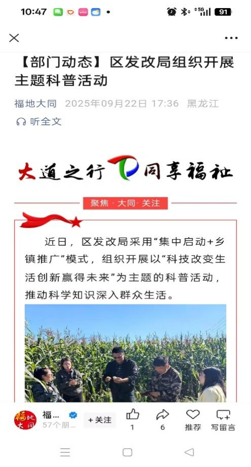 团队服务赢得了当地农户的高度认可与赞誉,并在“福地大同”公众号上宣传。