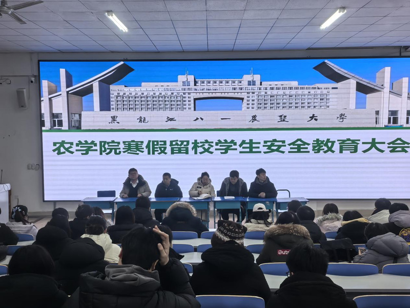 为切实做好寒假期间留校学生教育管理与服务工作,强化学生安全防范意识,保障校园安全稳定,2025年1月19日上午10时,农学院在主楼124教室召开2025-2026学年寒假留校学生安全教育大会。学院党委副书记白巍、副院长张明聪,各年级辅导员及全体寒假留校学生共300余人参加会议。