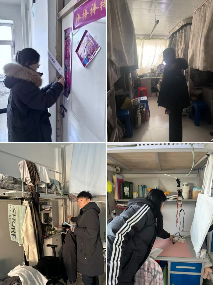 会后,各年级辅导员带领学生骨干开展寒假寝室安全专项检查,切实夯实平安寝室建设根基。检查重点围绕学生寝室的环境卫生、用电安全等情况展开细致排查,逐间核查安全隐患,对发现的问题当场督促整改,确保风险点及时消除;针对已确认全部离校的寝室,统一张贴封条,进一步强化假期学生财物安全保障。