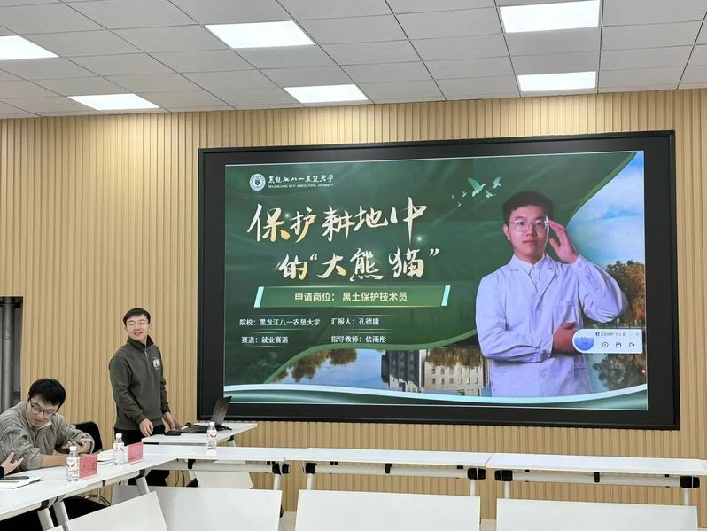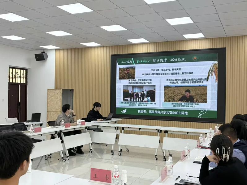 竞赛交流环节,东北农业大学资环学院杨弘楠及我院孔德庸、禹金琦 3 名职业生涯大赛省级决赛学生代表依次展示,从职业规划设计、实践成果呈现等方面汇报,与会教师结合赛事标准与行业趋势精准指导,提出优化建议,助力学生打磨作品、明晰方向。