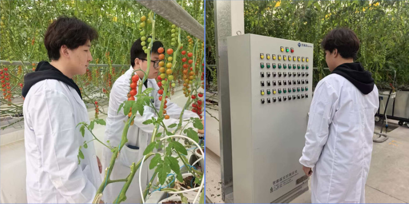 在企业负责人和技术人员的全程带领讲解下,实践团队走进企业智能化生产车间与玻璃温室,近距离接触智慧农业的实际应用场景。温室里的果蔬采用吊挂式无土栽培模式,以椰糠基质替代传统土壤,从根源上规避了土传病害和重金属污染问题;温室内布设的各类传感器,能实时精准监测温度、光照、湿度等环境指标,后台中央控制平台可根据监测数据自动调控遮阳、通风、水肥供给等环节,彻底改变了传统农业“靠天吃饭”的现状。技术人员还结合实际操作,详细讲解水肥一体化精准灌溉系统的工作原理,这套系统能根据不同作物的生长阶段和需求,精准配比营养液并定时定量滴灌,不仅节水节肥50%以上,还能有效提升果蔬品质和产量,让团队成员直观感受到智慧农业在实际生产中的高效与便捷。