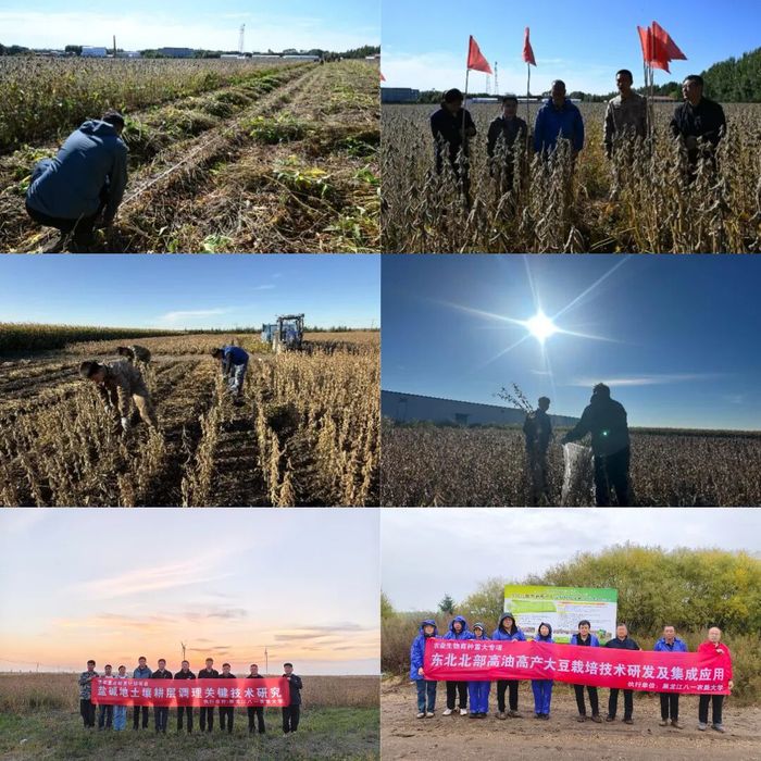 金秋十月,黑土地迎来丰收季,团队各基地的秋收测产工作也紧锣密鼓展开。在和平牧场高产攻关示范田,经专家实地测算,应用“大豆宽台大垄匀密高产栽培技术”的地块,亩产稳定突破320公斤,延续了团队在极端条件下保产高产的硬实力;安达盐碱地示范基地更传来捷报,重度苏打盐碱地大豆亩产达 220 公斤,较往年改良初期提升近三成,让“不毛之地”真正变成了“丰收良田”。四方山农场、鹤山农场的轮作试验田与土壤改良示范田,经测产也均实现亩产提升 15% 以上,沉甸甸的豆荚里,装满了团队用科技换来的丰收喜悦,更让种植户的增收底气愈发充足。