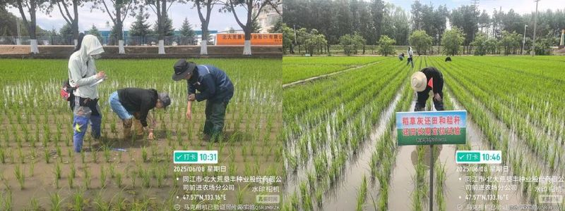 2025年4月27- 2025年4月28日,团队刘丽华和刘月月到北大荒农业股份有限公司七星农场就“三江平原粳稻温光高效与抗寒促早机械化丰产优质技术研发与示范”课题中承担的任务,进行水稻苗期调查。