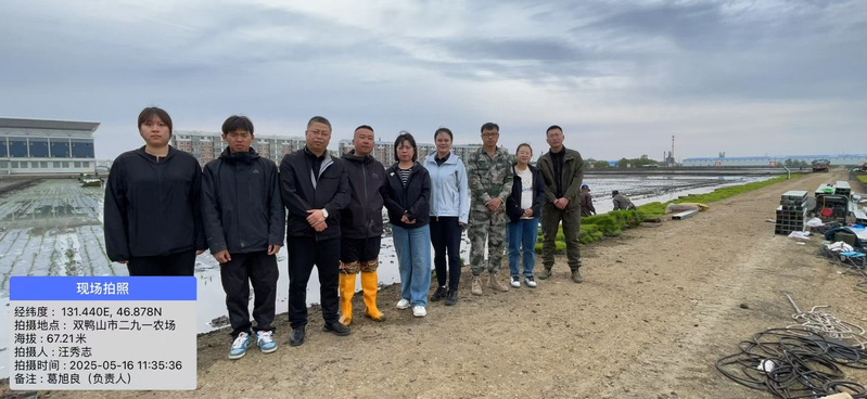 2025年5月16日汪秀志赴双鸭山市二九一农场进行生物降解膜覆膜机插水稻技术指导。