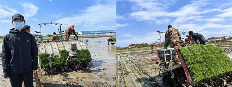 2025年5月17日--18日,八五八农场,开展寒地稻田轻简耕作技术研究插秧工作。