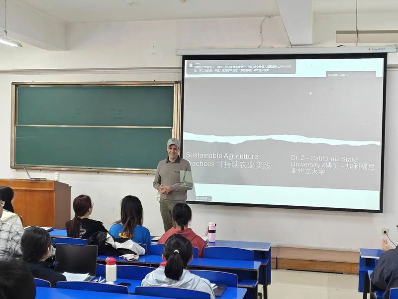 首次课堂上,Hossein教授以生动的案例和深入浅出的讲解,引导学生进入可持续农业的学术语境。虽然采用全英文教学,但学生参与度很高,课堂互动积极,回答问题踊跃,展现出浓厚的学习兴趣。不少学生表示,这种全新的授课模式和风格既带来了挑战,也激发了学习动力,在掌握专业知识的同时,也锻炼了专业英语听说能力。