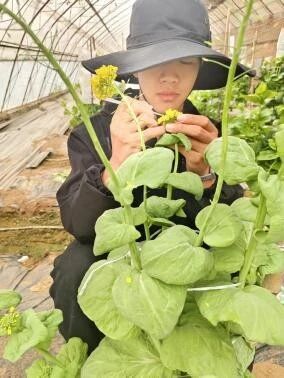 杨本明:穿梭在白菜试验田中,每一次授粉操作都是与生命的对话。顶着寒风与阳光,我将父本的花粉精准授予母本,这不仅是基因的组合,更是未来希望的播种。当手上沾满泥土与花粉时,我更真切地感受到农业是“手脑并用”的艺术。这段经历让我明白,丰收没有捷径,唯有通过日复一日的辛勤耕耘,才能换来硕果累累。我也更加坚定了投身农业事业的决心。