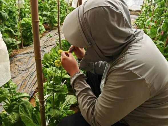 团队总结:本次团队圆满完成白菜杂交、自交授粉工作。大家分工协作、严谨操作,严格执行去雄、套袋、授粉、标记等流程,保障材料纯度与试验准确性。过程中相互配合、耐心细致,克服花期集中、操作精细等难题,高效完成全部授粉任务。此次实践提升了专业技能,锤炼了严谨作风,为后续白菜育种研究打下坚实基础。今后将总结经验、优化流程,以更扎实的态度投入科研工作。