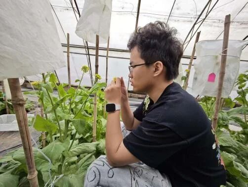 闫佳俊:在白菜杂交授粉的实践中,我领悟到科学研究往往藏在“方寸”之间。从花序的整理到柱头的触碰,每一个细节都决定着种子的成败。通过反复练习,我逐渐掌握了手感与时机,也意识到严谨的数据记录远比盲目忙碌更重要。工作虽枯燥,却培养了我专注的品质。农业的魅力,正在于这份在细微处雕琢希望的“匠心”,也让我更加敬畏脚下的土地。
