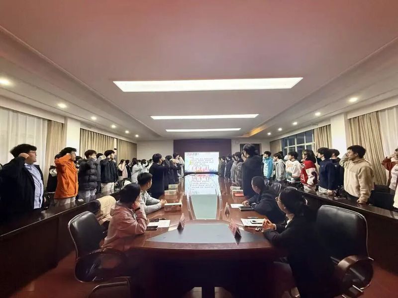 在新任田径队管理层杨子毅带领下,全体队员庄严宣誓:以饱满热情投身训练,遵守纪律、顽强拼搏,为学院争光。最后,与会领导、老师与队员代表合影留念,大会圆满落幕。