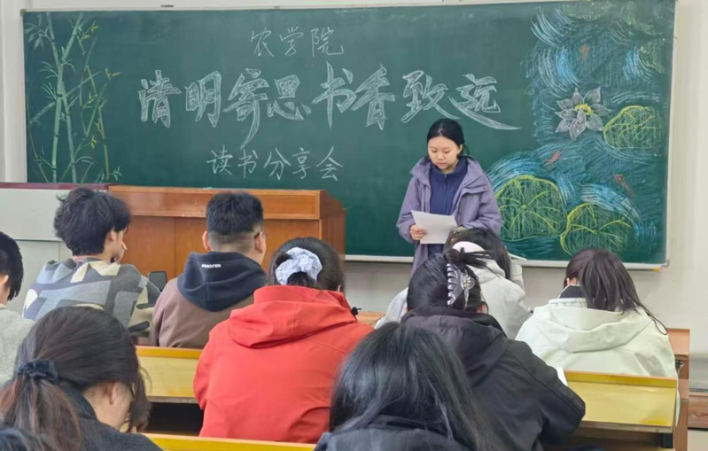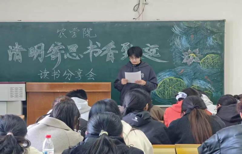 为深切缅怀革命先辈、传承中华文脉,在清明时节厚植青年学子家国情怀与农学人耕读精神,农学院社团联合会于4月1日在主楼西侧212教室,成功举办“清明寄思,书香致远”读书分享会。50余名农学学子齐聚一堂,以书为媒、以文寄情,追思先贤伟绩,共品书香雅韵,在笔墨书香中传承红色基因、汲取奋进力量。
